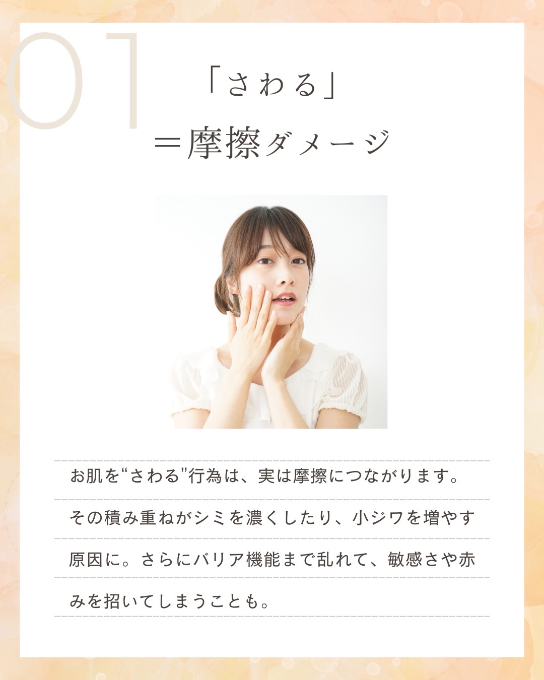 「さわる」「ふれる」は、ほんの言葉の違いに見えますが、お肌にとっては大きな差。