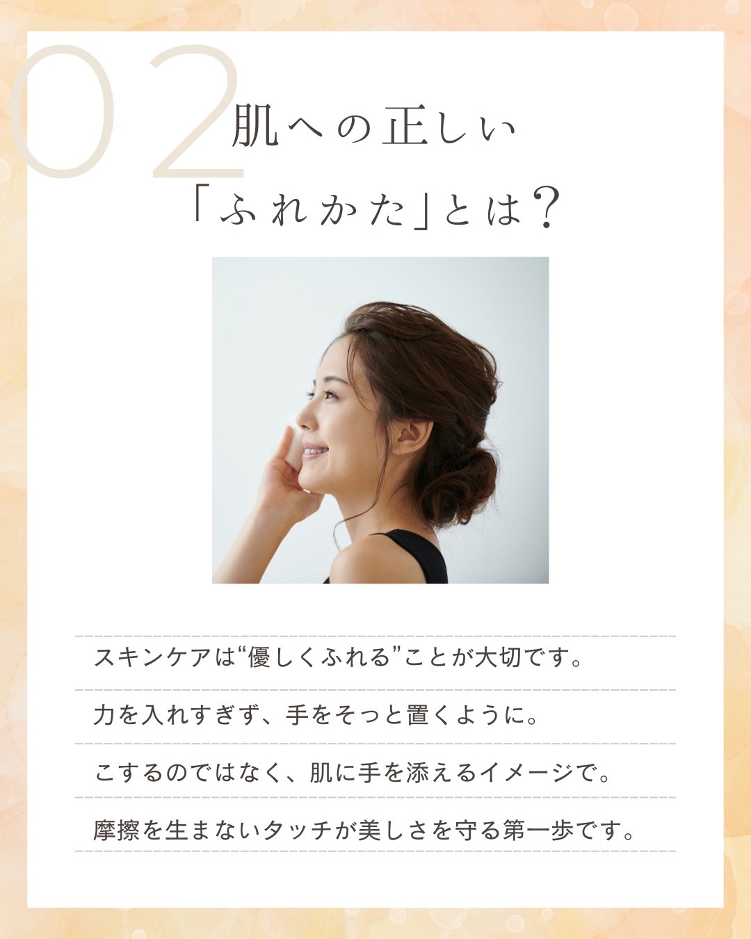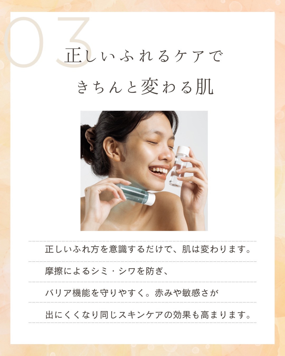 つまり、「ふれ方」を変えるだけで、同じスキンケアがよりパワフルに働くのです。